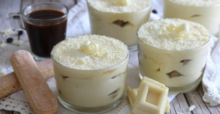 IngredientiOva grossa (o 4 medie)3CASO MASCOPONE250gSUTRIZIONE3 cucchiaiCIOCCOLATO BIANCO FUSO120gBISCOTTOcirca 8CAFFÈcirca 2 tazzeSALTONE1 pizzicoVi occorrerà ancheCIOCCOLATO BIANCO INCARTATOsnackTazza di cioccolato biancosnackIl tiramisù al cioccolato bianco è una variante ancora più gustosa …